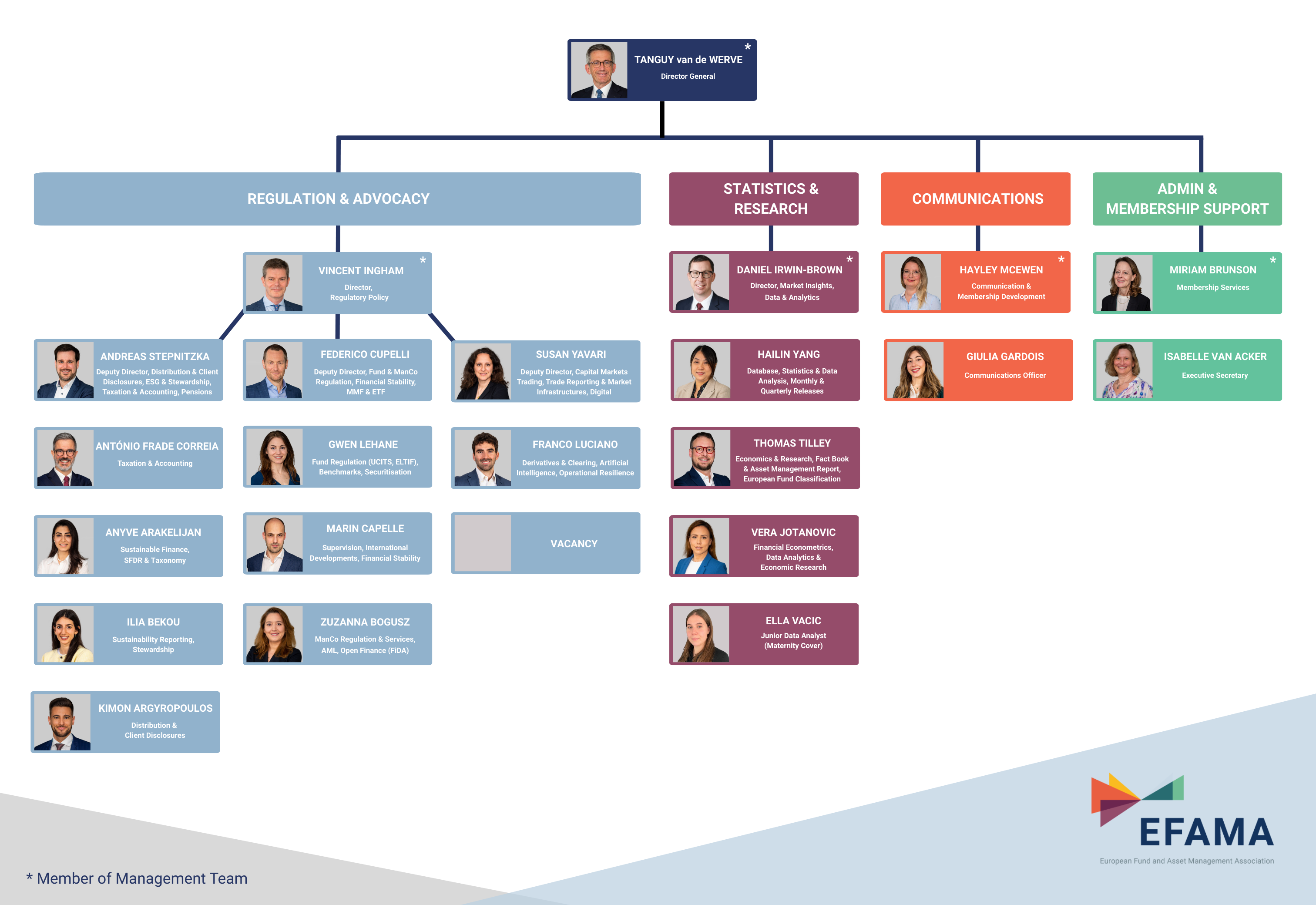 Our 20+ strong dynamic and international team is fully dedicated to serve the members and to ensure the voice of the European investment industry is heard loud and clear. It is supported in its work by committees and taskforces populated by members' experts.